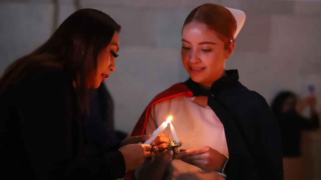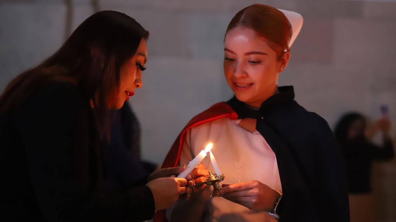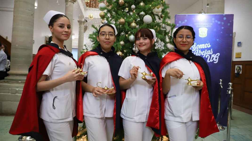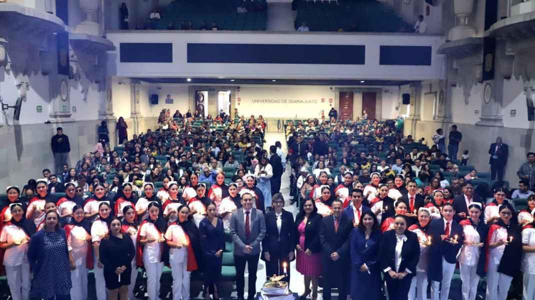 Guanajuato, Gto., a 10 de diciembre de 2024.- En una emotiva ceremonia, se realizó el Pase de luz y juramento de Enfermería, acto en el que 52 estudiantes de la División de Ciencias Naturales y Exactas (DCNE) de la Universidad de Guanajuato (UG) celebraron la culminación de su programa de estudios.