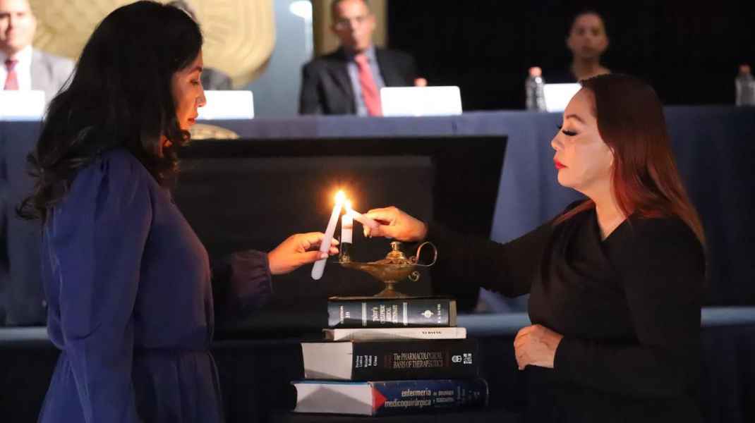 A lo largo del desarrollo de la ceremonia, se mostraron los cuatro símbolos representativos de la Enfermería: el uniforme blanco que integra la limpieza, la pureza, el autocuidado y el apoyo al otro; la cofia que simboliza el honor, la distinción y la responsabilidad; la capa que hace alusión al peso que cae en los hombros por la responsabilidad contraída con la sociedad; y la lámpara que representa la luz requerida en todo acto de cuidado, además de la calidad, el conocimiento y la iluminación que brinda el saber.