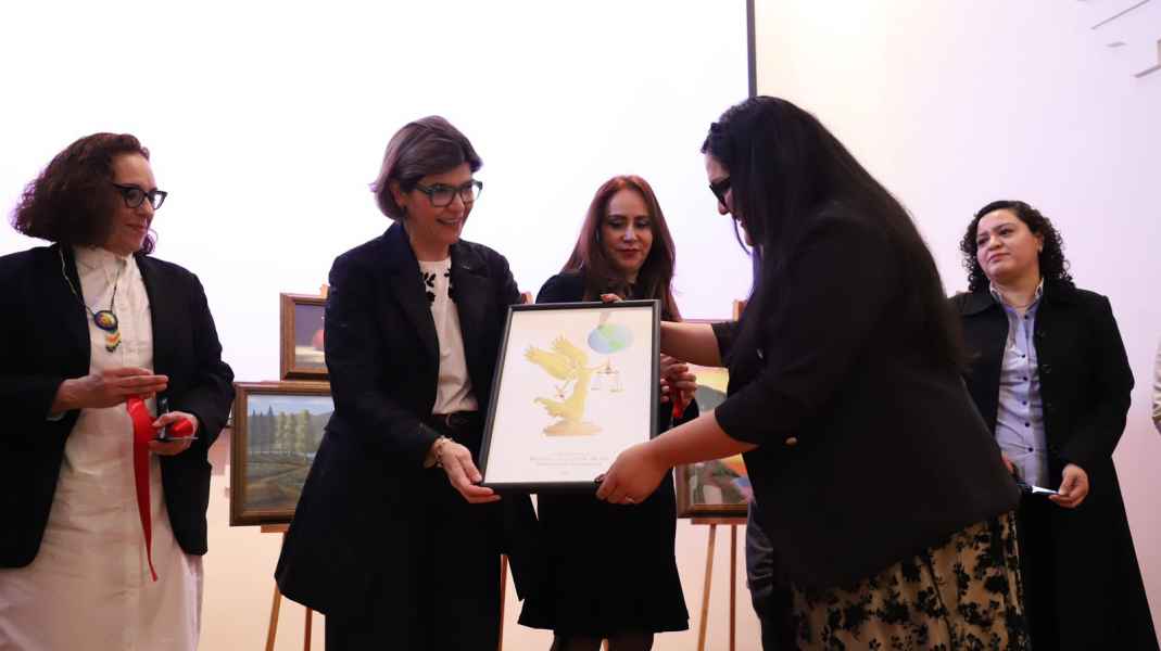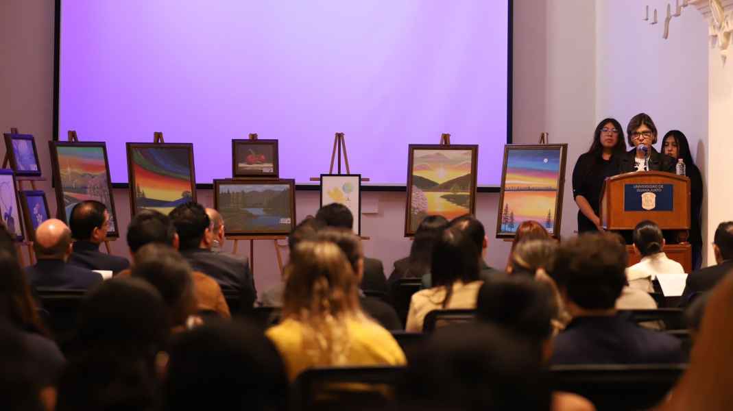 Como parte de las actividades conmemorativas, la egresada de la División de Derecho Política y Gobierno del Campus Guanajuato, Lcda. Claudia Isela Anguiano Hernández, presentó la exposición de artes visuales titulada “Paisajes de vida: la naturaleza como testigo de los derechos humanos”, proyecto que engloba múltiples piezas y en el que se destaca la utilización de una amplia gama de colores como un equivalente de la diversidad y multiculturalidad existente en el país.
