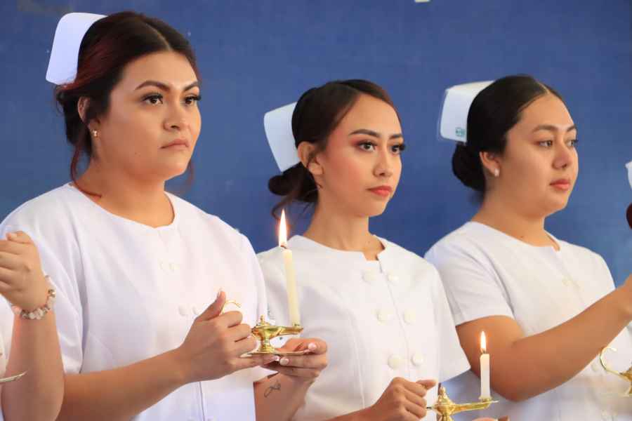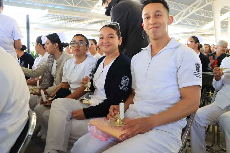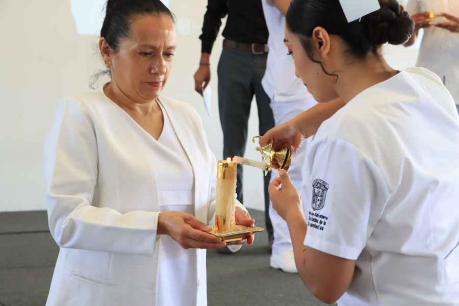 La ceremonia contó con tres elementos significativos: la luz que representa la firmeza, la fe y la esperanza que se requieren en todos los actos de cuidado de otro ser humano; la lámpara o el candil como emblema de la profesión y símbolo de la cultura y el estudio y el uniforme blanco, color asignado desde la creación de la primera escuela de enfermería, este último como símbolo de higiene y transparencia en los cuidados que ofrecen.