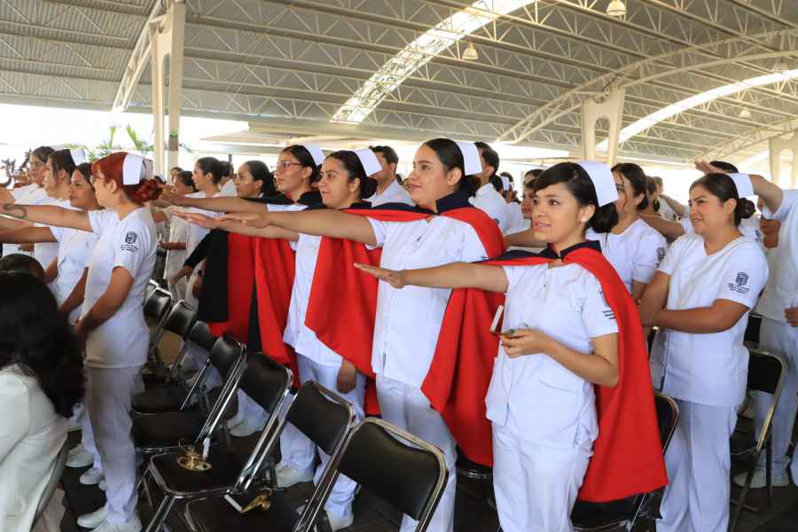 La Directora de la División de Ciencias de la Salud e Ingenierías, Dra. María de Jesús Jiménez González, fue la encargada de tomar el juramento a las y los nuevos profesionales de la salud, juramento simbólico que destaca los valores fundamentales de la profesión, tales como la ética, responsabilidad, compasión y servicio.
