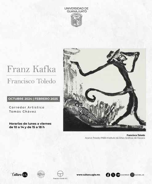 Mientras tanto, puedes disfrutar las exposiciones con obra de la Colección Toledo/INBAL, disponibles hasta febrero, en las galerías universitarias: “Mujeres y artes gráficas en la colección de Toledo” en la Sala temporal del Museo de la UG; “Lu´ Bianni: Francisco Toledo y la fotografía” en la Galería Polivalente; “Procesos. Francisco Toledo” en la Galería Hermenegildo Bustos; “Informe para una academia | Franz Kafka” en el Corredor Tomás Chávez Morado y “Carteles. Francisco Toledo” en la Galería el Atrio.