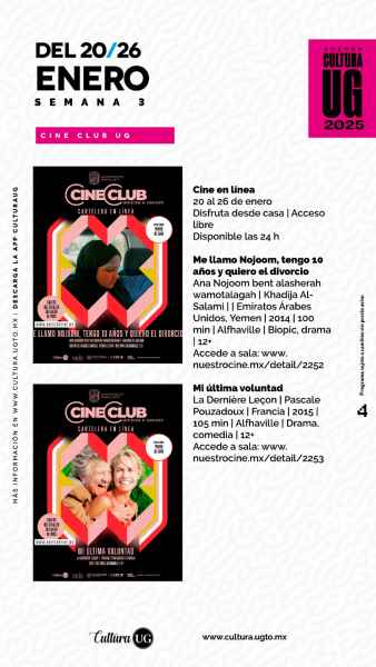 Consulta los detalles de la Agenda Cultural UG en www.cultura.ugto.mx. Programa sujeto a cambios sin previo aviso.