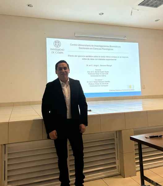 Cabe mencionar que su programa de doctorado fue en Ciencias Fisiológicas el cual lo realizó en la Universidad de Colima, del año 2021 al 2024 el cual obtuvo con su trabajo de tesis titulado: Efecto del ejercicio aeróbico sobre la expresión del óxido nítrico sintasa en el músculo sóleo de ratas con diabetes experimental.
