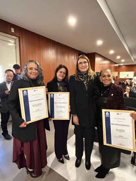 Debido a su trayectoria de casi treinta años en las ciencias de la salud, la Dra. Luz Elvia Vera Becerra, la Dra. Ma. Guadalupe Reynaga Ornelas y la Mtra. Elsa Patricia Olivares Navarrete, integrantes del Departamento de Medicina y Nutrición de la UG en el Campus León, recibieron la distinción de la mano y voz del Dr. Gabriel Cortés Alcalá, Secretario de Salud, acompañadas por la Dra. Graciela Ma. de la Luz Ruiz Aguilar, Secretaria de Gestión y Desarrollo de la UG.