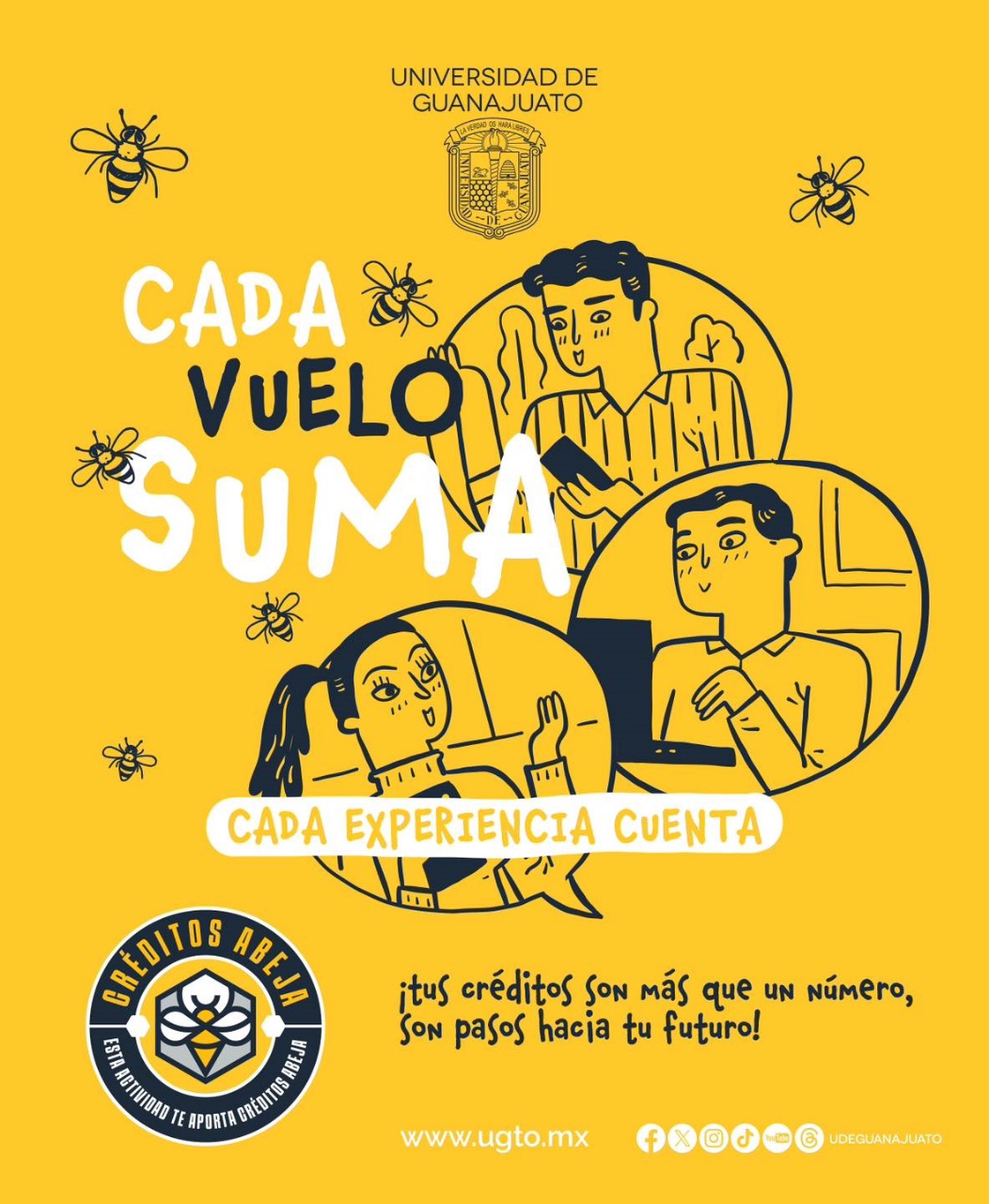 Guanajuato, Gto., a 13 de febrero de 2025.- La Universidad de Guanajuato (UG) invita a su comunidad estudiantil a identificar los ‘créditos abeja’, correspondientes a los créditos del área general, los cuales forman parte esencial de la formación académica en la UG. En ellos se representa el compromiso con el desarrollo integral y la construcción de una comunidad universitaria con responsabilidad social.