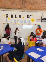 “Ha sido muy fluido pues la directora estaba buscando un proyecto para trabajar la lectura. La escuela es multinivel, lo que añade un reto, solo hay dos maestros, además de enfrentar una situación económica compleja. El recibimiento por la comunidad escolar, las madres y los padres ha sido muy bueno, nos han mostrado mucho interés y ofrecido apoyo de manera muy cooperativa, tanto con actividades de limpieza como con donaciones de libros y materiales. Hemos tenido que trabajar con lo que tenemos, pero nos hemos sentido muy acogidos”, comentó.