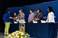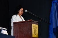 Maira Isabel Tapia Vergara, egresada de la especialidad en Medicina Familiar, quien representó a la comunidad egresada, compartió su visión y perspectiva respecto al estudio de una especialidad médica, dijo que “El estudio de la medicina y de las ciencias del sector salud es fundamental para las poblaciones, ya que todos necesitamos, en algún momento, atención médica.”