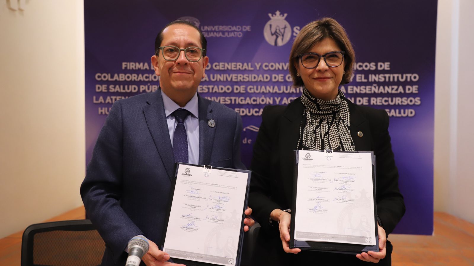 La firma de estos convenios tuvo como escenario el Claustro Académico Maestros Enrique Cardona Arizmendi y Cuauhtémoc Ojeda Rodríguez, ubicado en el Edificio Central de la UG. Este acto contó con la presencia del Secretario General de la UG, la y los rectores de los cuatro Campus, y titulares de Divisiones que ofertan programas educativos del área de la salud.