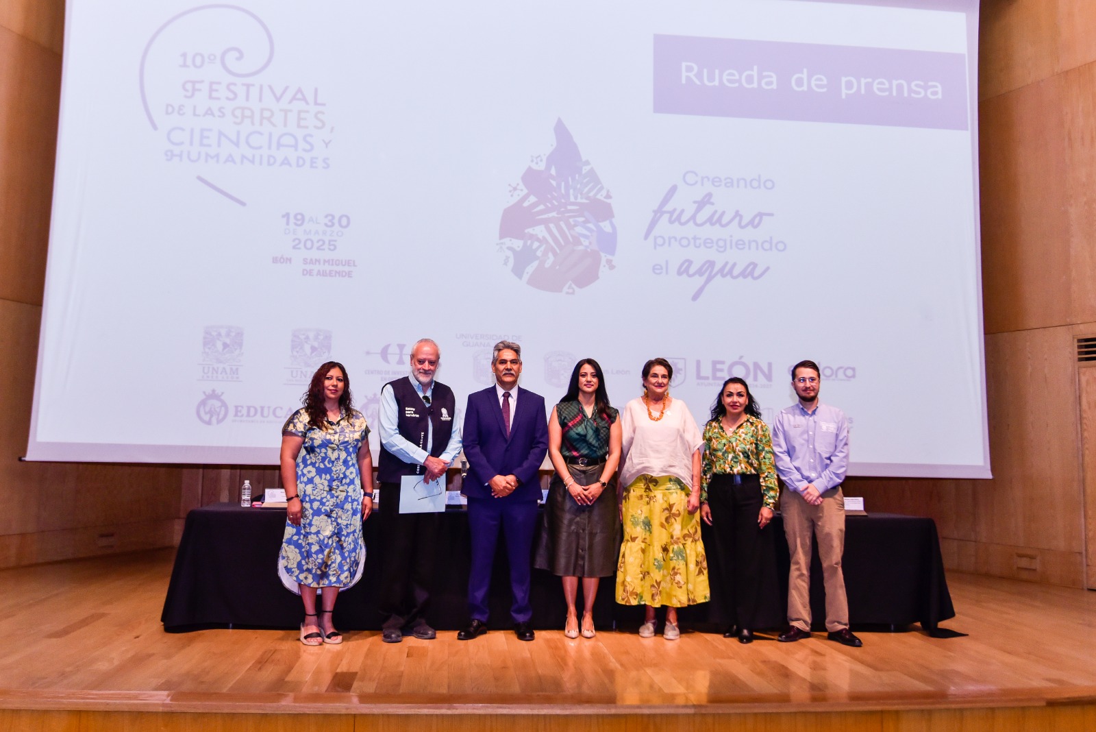 León, Gto., a 06 de marzo de 2025.- El Auditorio Mateo Herrera fue escenario de la rueda de prensa del 10° Festival de las Artes, Ciencias y Humanidades (FACH), que se llevará a cabo del 19 al 30 de marzo de 2025 en León y San Miguel de Allende y en el cual colabora activamente la Universidad de Guanajuato (UG) Campus León.