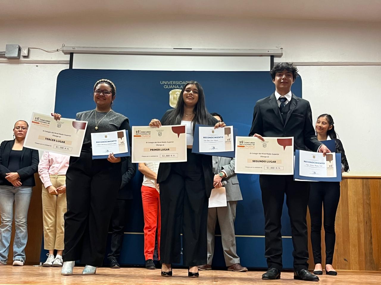 San Luis de la Paz, Gto. a 20 de marzo de 2025.- En la décima sexta edición del Concurso de Oratoria del Colegio del Nivel Medio Superior (CNMS) de la Universidad de Guanajuato (UG), el primer lugar lo obtuvo Dafne Sakaé Rubio Delgado, de la Escuela de Nivel Medio Superior (ENMS) de San Luis de la Paz, con el discurso “Más allá de las fronteras”. El segundo lugar fue para Edgar Emiliano Mendoza Limón, de la ENMS de Irapuato, con “Los derechos humanos no se piden, se exigen”; mientras que el tercer lugar fue para Lizbeth Michelle Ramos Flores, de la ENMS de Salamanca, con el discurso “Mujer originaria: tesoro de mi nación”.