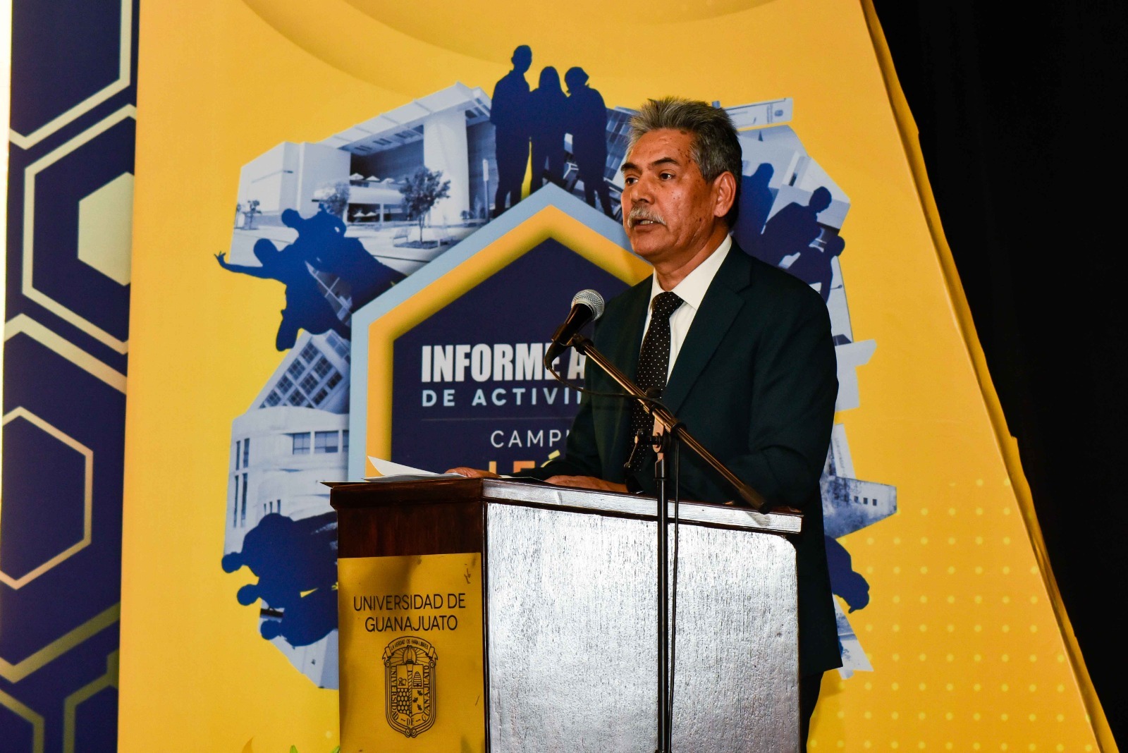 León, Gto., a 27 de marzo de 2025.- En sesión solemne del Consejo Universitario de Campus León de la Universidad de Guanajuato (UG), se presentó el Informe Anual de Actividades 2024 a cargo del Dr. Mauro Napsuciale Mendívil, Rector de Campus León, bajo el lema “Colmena innovando para la sociedad”.
