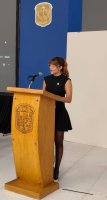 También tomó la palabra la alumna Andrea Samantha Oceguera Escamilla, Coordinadora General del Grupo “Fundación RI”, quien relató que se tuvieron en la organización muchas ideas compartidas y mucha pasión para esta 8ava. Edición de un proyecto de estudiantes para estudiantes, brindando espacios de aprendizaje. Agradeció a las autoridades y a su mentora por la oportunidad de crear proyectos que impacten su trayectoria profesional.