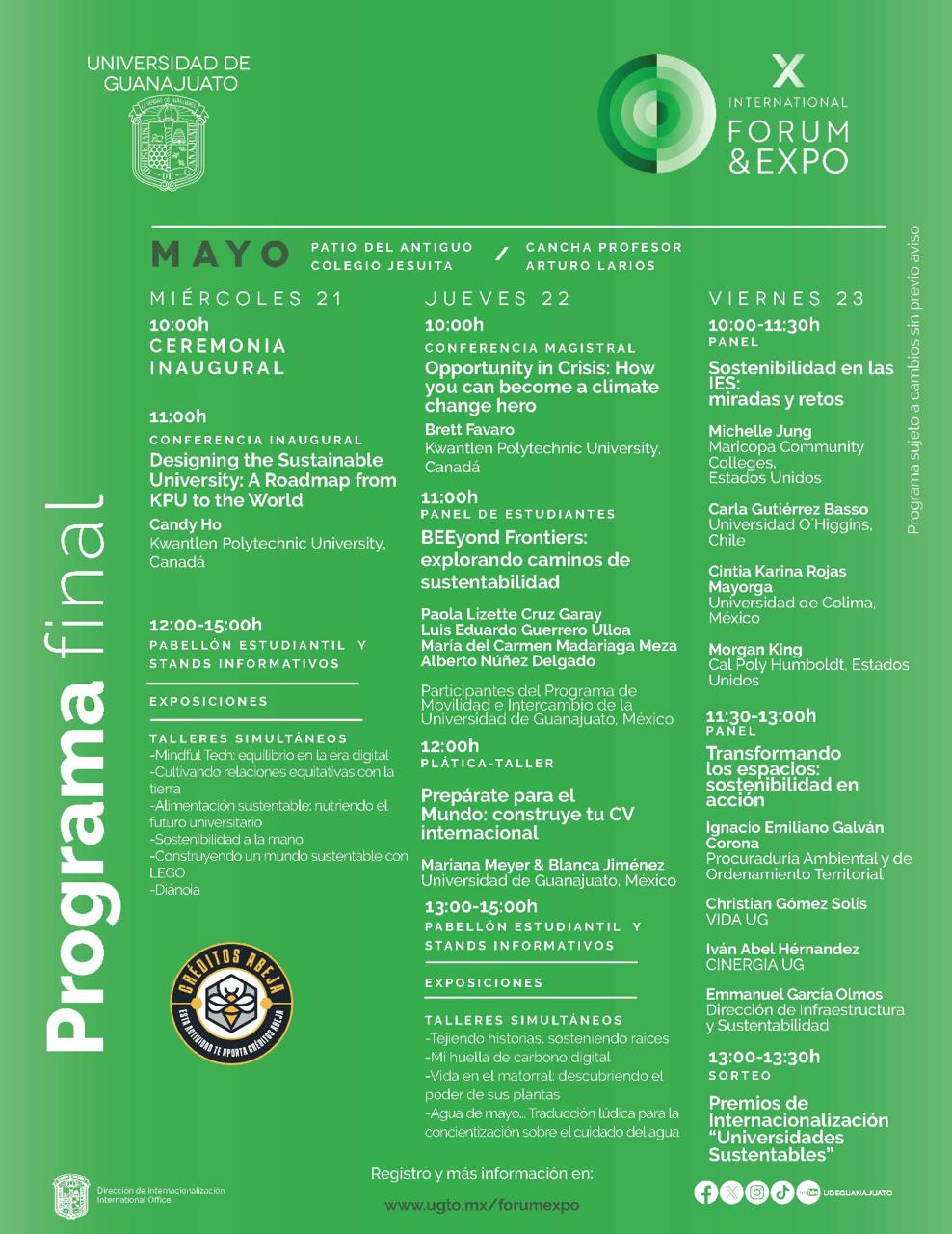 Desde el eje “Universidades Sostenibles”, esta décima edición contempla actividades como paneles, conferencias, pabellones y talleres, entre otras, donde la comunidad estudiantil podrá interactuar y establecer contacto con las y los representantes de países como Alemania, Brasil, Canadá, Corea del Sur, Costa Rica, Japón, entre otras naciones.