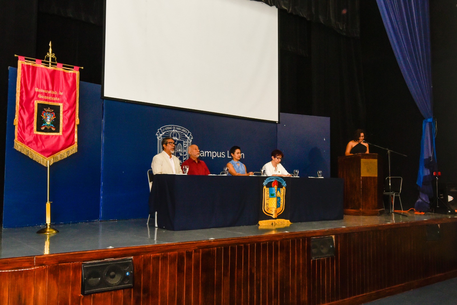 La ceremonia inaugural se llevó a cabo en el Auditorio Jorge Ibargüengoitia de la Sede Fórum y contó con la presencia de la Dra. Katya Vargas Ortiz, Secretaria Académica del Campus, en representación del Dr. Mauro Napsuciale Mendívil, Rector del Campus León.