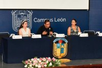 Como invitadas en la mesa de presídium se contó con la asistencia de la Dra. Rosa María Rodríguez Medina, Coordinadora del programa educativo de Enfermería y Obstetricia del Campus León, y como representante de la comunidad académica, la Dra. Luxana Reynaga Ornelas.