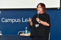 Por otra parte, hizo uso de la voz la Dra. Ma. del Carmen Méndez Hernández, Directora del Departamento de Enfermería y Obstetricia del Campus León, quien hizo alusión al lema 2025 de esta conmemoración: “Nuestras enfermeras y enfermeros. Nuestro futuro. Cuidando de las y los enfermeros fortalecemos la economía”, tema elegido por el Consejo Internacional de Enfermeras y Enfermeros (CIE).