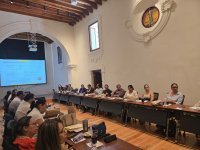 Guanajuato, Gto., a 14 de mayo de 2025.- Presentan a autoridades del Colegio del Nivel Medio Superior (CNMS) el Procedimiento de Responsabilidades en el Entorno Universitario, el cual aborda aspectos fundamentales para la consolidación de una cultura institucional basada en la responsabilidad, la integridad y el compromiso ético en la comunidad académica. La reunión se llevó a cabo en el Claustro Académico "Maestros Enrique Cardona Arizmendi y Cuauhtémoc Ojeda Rodríguez", en el Edificio Central de la Universidad de Guanajuato (UG).