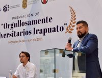 Irapuato, Gto. a 14 de Mayo de 2025.- La División de Ciencias de la Vida de la Universidad de Guanajuato (UG) fue sede de la ceremonia de premiación de “Orgullosamente Universitarios Irapuato” que organizó el gobierno de Irapuato a través del Instituto Municipal de la Juventud, con la participación de un centenar de estudiantes de los planteles Incarnate Word Campus Bajío, Instituto Tecnológico de Estudios Superiores de Irapuato (ITESI) y de la Universidad de Guanajuato (UG).