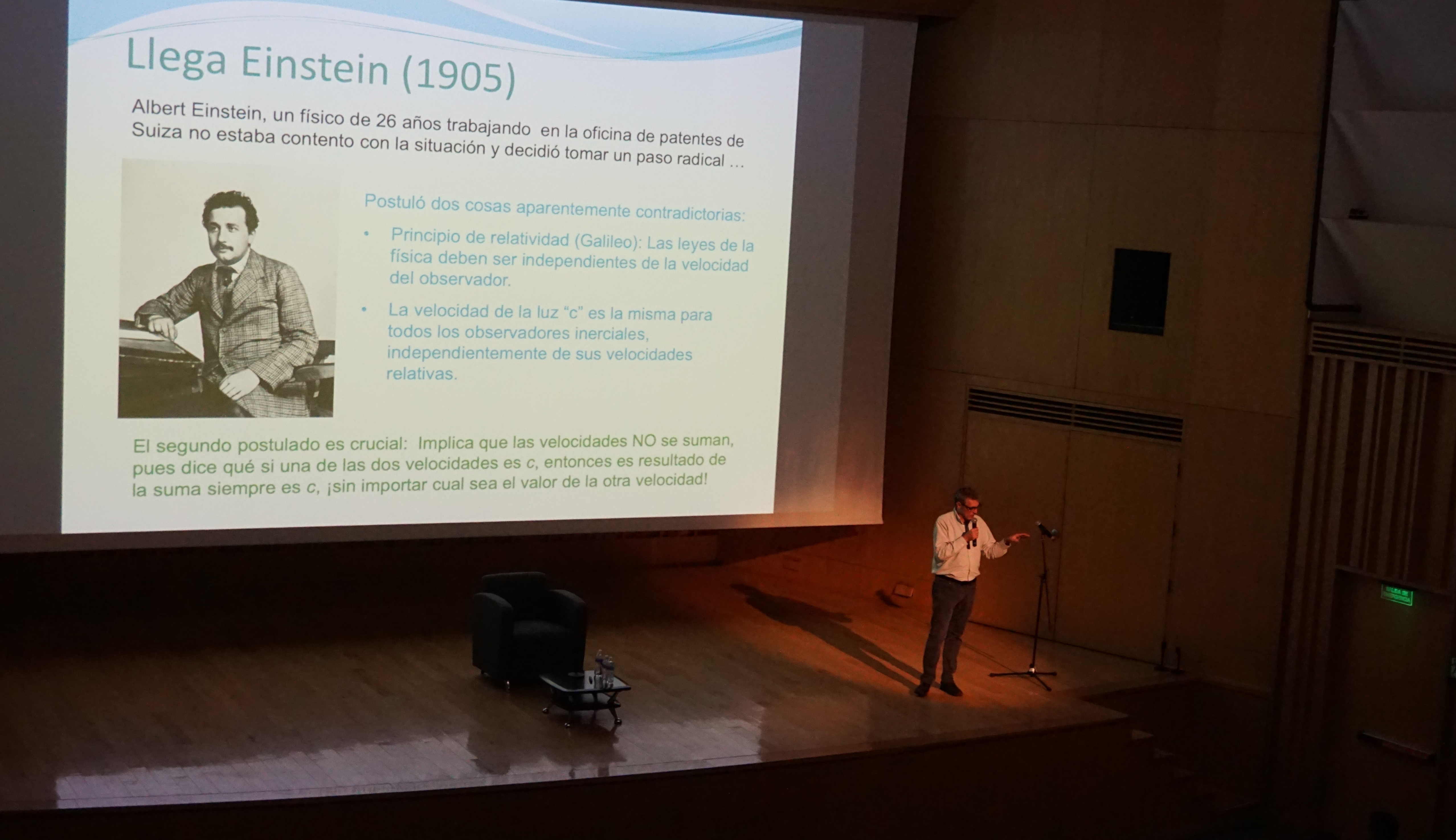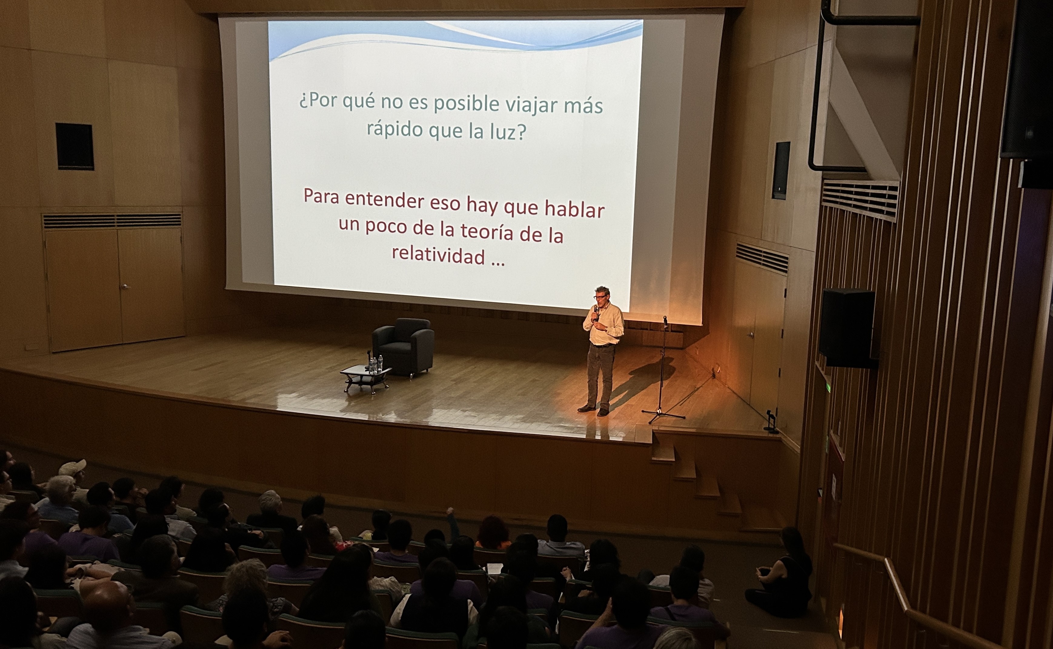 -El reconocido científico presentó su modelo matemático en la conferencia “Más rápido que la luz”, dirigida a estudiantes y público general