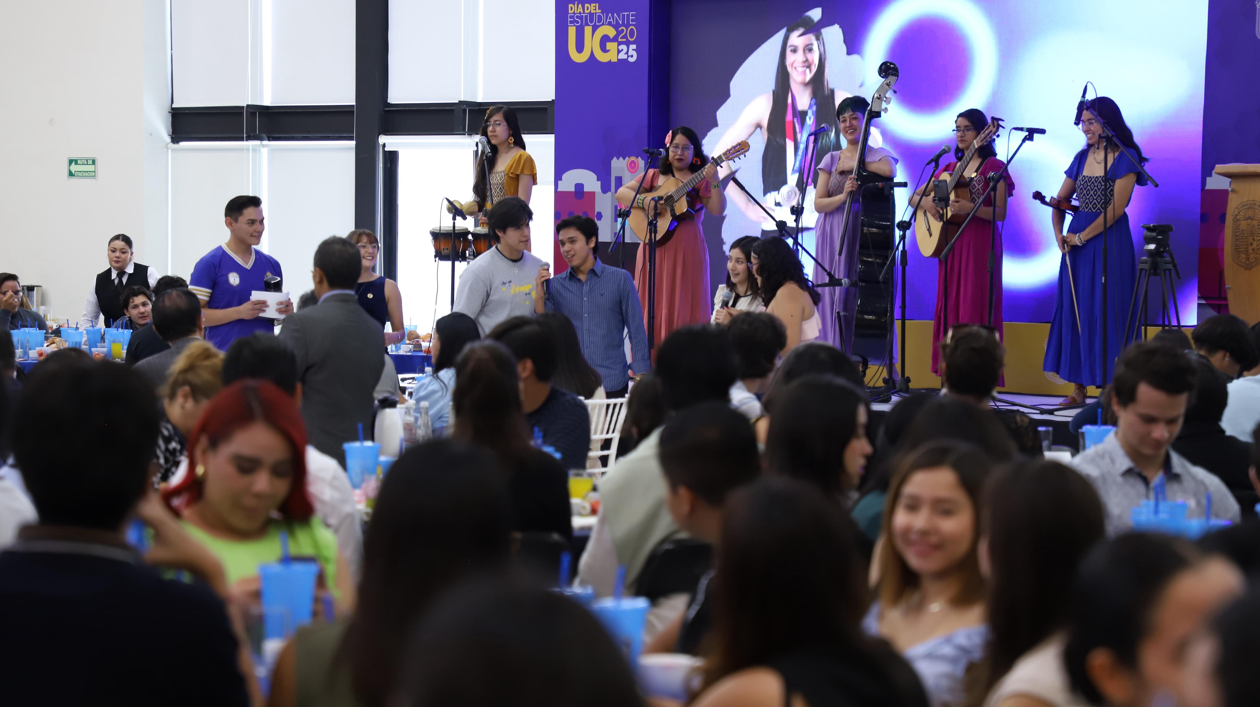 Guanajuato, Gto., a 27 de mayo de 2025.- Con el desayuno conmemorativo por el Día del Estudiante UG 2025, representantes de la comunidad estudiantil de la Universidad de Guanajuato (UG), tanto del nivel medio superior como superior, dieron cierre a las actividades realizadas en el marco de esta celebración. Esta fecha simboliza la esencia de la lucha de las y los estudiantes por la libertad académica, y representa un reconocimiento a su papel fundamental dentro de la vida universitaria.
