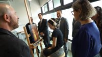 Al término de la ceremonia, autoridades, docentes y estudiantes recorrieron con alegría las nuevas instalaciones del Edificio de las Artes. Entre los asistentes, se encontró el Secretario General de la UG, Dr. Salvador Hernández Castro; la Secretaria de Gestión y Desarrollo, Dra. Graciela Ma. de la Luz Ruiz Aguilar; el Secretario Académico del Campus Guanajuato, Dr. Artemio Jiménez Rico; la Secretaria Académica de la DAAD, Dra. Paola Ayesha Corral Avitia; y el Coordinador de Recursos Materiales y de Servicios Administrativos, Ing. Juan Luis Ramírez Bustamante, así como las y los coordinadores de los programas educativos impartidos en el edificio.