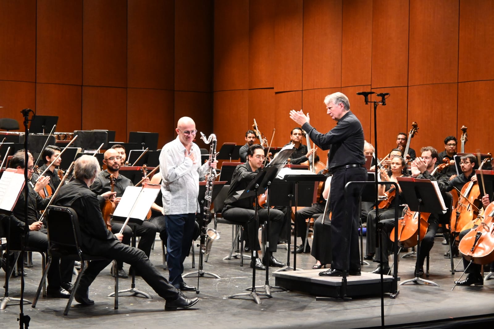 Le siguieron las intensas y coloridas “Danzas mestizas” del compositor mexicano Arturo Márquez, una obra escrita para clarinete bajo y cuerdas, que fue interpretada por el solista Luis Mora; Las cuatro danzas que conforman esta obra: Duelo, Zarabanda primera, Pasacalle azul y Fuentes de la chacona, exploraron distintos ritmos y lenguajes desde un enfoque mestizo, fusionando la tradición popular con estructuras clásicas.