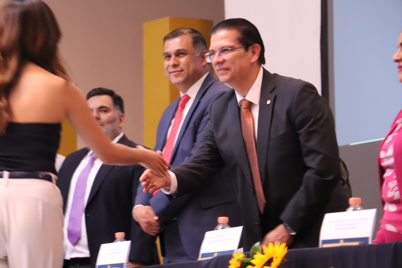 En la ceremonia de egresos de Licenciaturas, estuvo presente la Dra. Laura Elena Zárate Negrete, Secretaria Académica de la DCEA; la Dra. Ariadna Crisantema Martínez Hernández, Directora del Departamento de Estudios Organizacionales; el Dr. Agustín Ruíz Lanuza, Director del Departamento de Gestión y Dirección de Empresas y el Dr. Alejandro Mosiño Jasso, Director del Departamento de Economía y Finanzas.