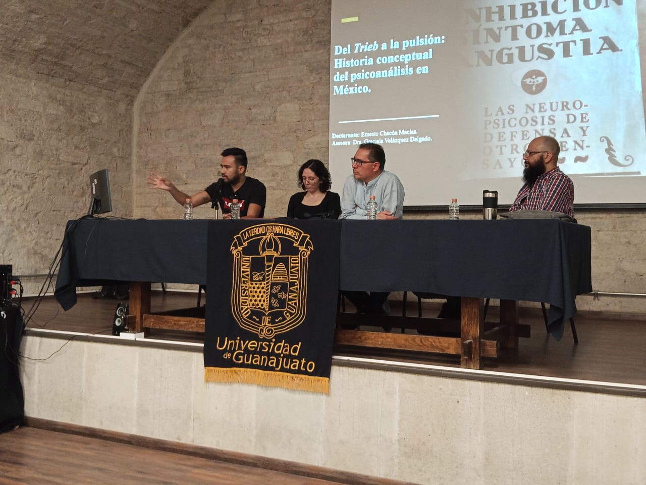 Posteriormente, el Mtro. Ernesto Chacón Macías expuso su ensayo: “Del Trieb a la pulsión: historia conceptual del psicoanálisis en México”, para el cual recibió la asesoría de la Dra. Graciela Velázquez Delgado.