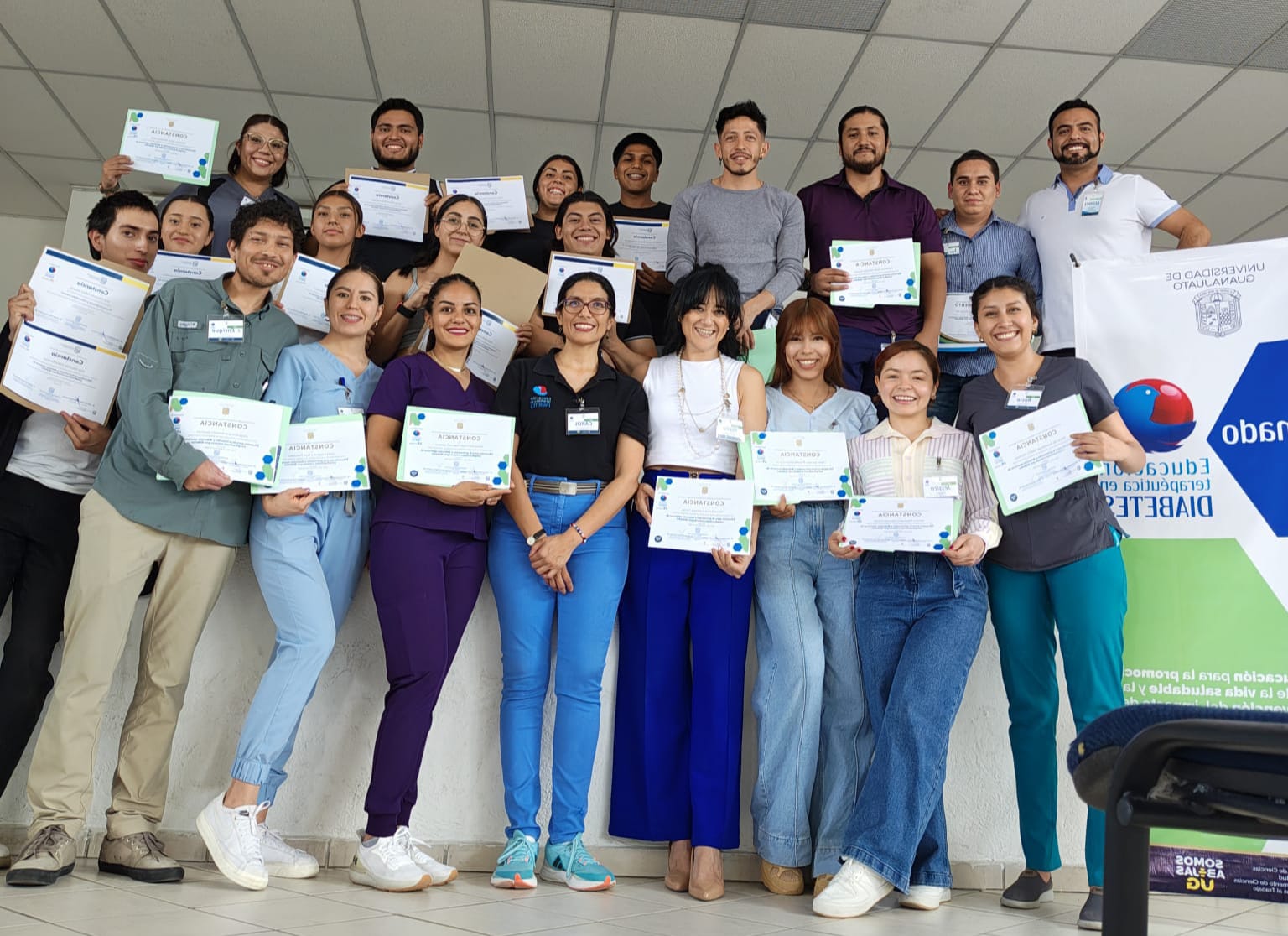 León, Gto. a 03 de julio de 2025.- Con el objetivo de fortalecer la formación de profesionales en el manejo integral de la diabetes, estudiantes del Diplomado en Educación Terapéutica en Diabetes, impartido por la División de Ciencias de la Salud del Campus León de la Universidad de Guanajuato (UG), participaron en el Taller de Educación para la Prevención y Detección Oportuna de Complicaciones por Diabetes, realizado en colaboración con la Asociación Mexicana de Diabetes en Guanajuato A.C.