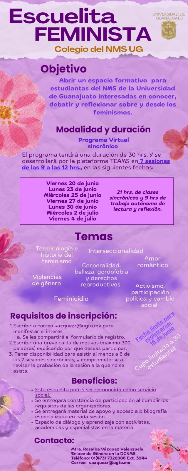 Este programa abordó temas como terminología e historia del Feminismo, violencias de género, interseccionalidad, feminicidio, amor romántico, corporalidad, gordofobia, derechos reproductivos, activismo, participación política y cambio social.