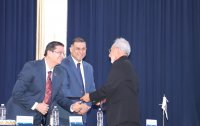 Durante la ceremonia realizada en el Auditorio General de la UG, se entregó un reconocimiento al Dr. Ramón Francisco Torres Vázquez, catedrático de tiempo completo del programa de Relaciones Industriales y formador de muchas generaciones, quien hizo el tradicional pase de lista.