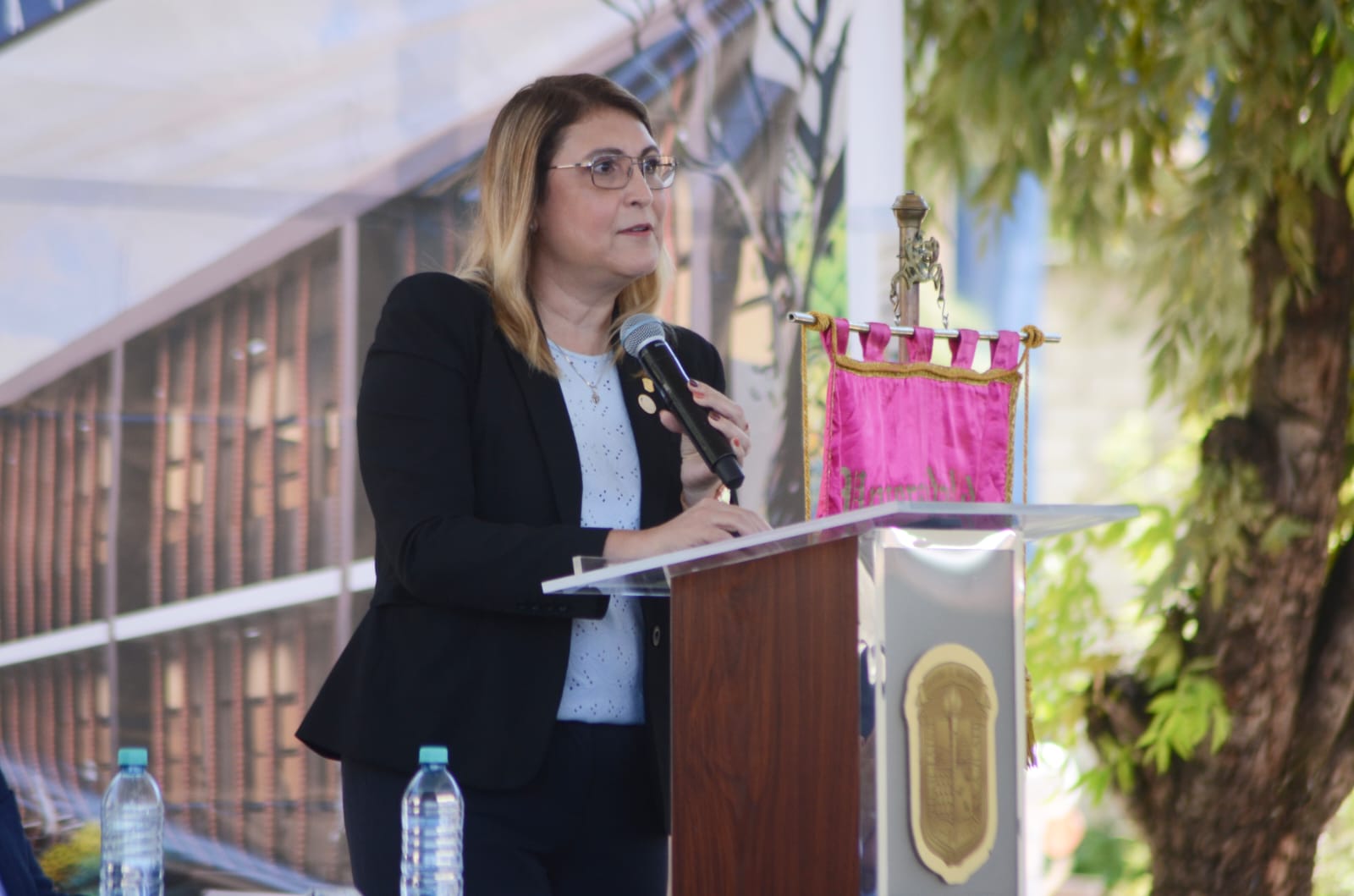 La Dra. Graciela Ma. de la Luz Ruiz Aguilar, Secretaria de Gestión y Desarrollo de la Universidad, en representación de la Dra. Claudia Susana Gómez López, Rectora General de la UG, enfatizó el valor humano de la institución, “una escuela no se define nada más por los muros, los espacios, los salones, sino por las personas que lo habitan, y hoy este espacio está lleno de historias que nos recuerda porque vale la pena tener una educación pública, hacer comunidad y en el poder de las coberturas… hace 5 décadas, estudiar en Silao no era fácil, y hubo personas que no se resignaron y tocaron puertas, y de ahí empezaron con lo mínimo…hoy es una escuela que es un referente con el compromiso, la equidad y la inclusión”.