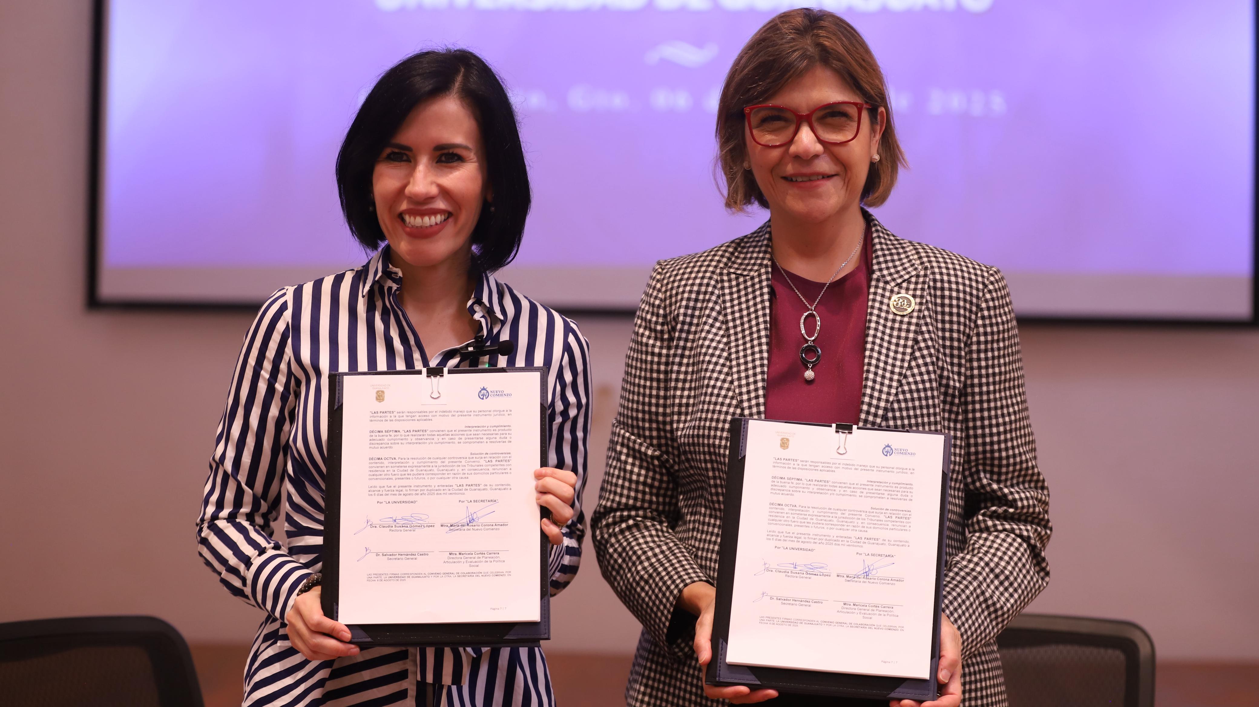 Como representantes de ambas instituciones, la firma celebrada en el claustro académico "Maestros Enrique Cardona Arizmendi y Cuauhtémoc Ojeda Rodríguez” estuvo encabezada por la Rectora General de la Universidad de Guanajuato, Dra. Claudia Susana Gómez López y la Secretaria del Nuevo Comienzo, Mtra. María del Rosario Corona Amador.