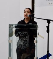 Mariana Santibáñez Barrientos, alumna e integrante del comité organizador, dio la bienvenida a las y los estudiantes de primer ingreso; asimismo, agradeció por contar con espacios que permiten adquirir y desarrollar conocimientos, descubrir nuevos horizontes dentro de la Medicina veterinaria y la Zootecnia que hacen crecer esa bella profesión, describió.
