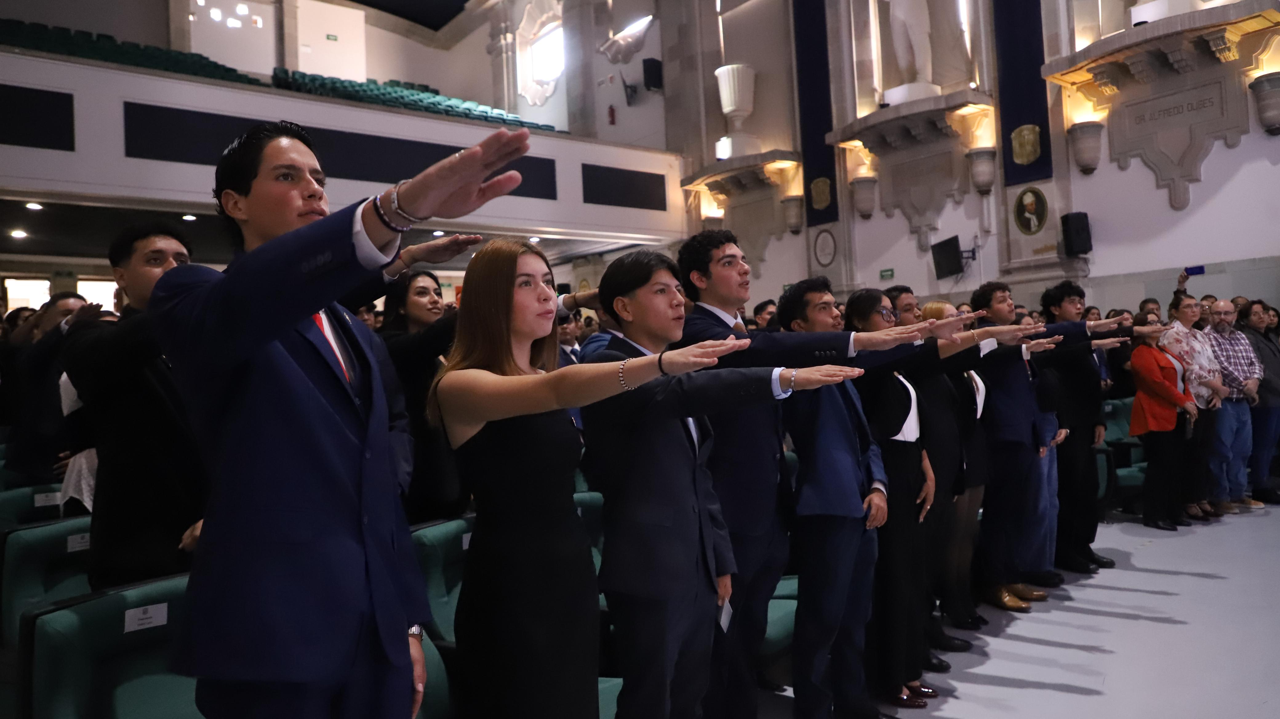 Finalmente, Sharis Lizbeth García Montiel, estudiante en representación de las Mesas Directivas 2025-2026, dirigió un mensaje a sus compañeras y compañeros que hoy asumen el reto de ser parte de las SODALES, “somos las, les y los estudiantes que, con empeño y ética, damos vida a la universidad. La vamos construyendo no solo en las aulas, sino en el diálogo, en los debates que generan ideas, en las Mesas Directivas, con quienes sostienen la cultura, el conocimiento y la vida universitaria. Por eso, el cargo que hoy asumimos es tan importante. Una sociedad de alumnos representa y defiende a la comunidad estudiantil. Surgimos como respuesta a retos específicos; hoy pensamos en la Universidad y en las generaciones que están por venir”, concluyó.