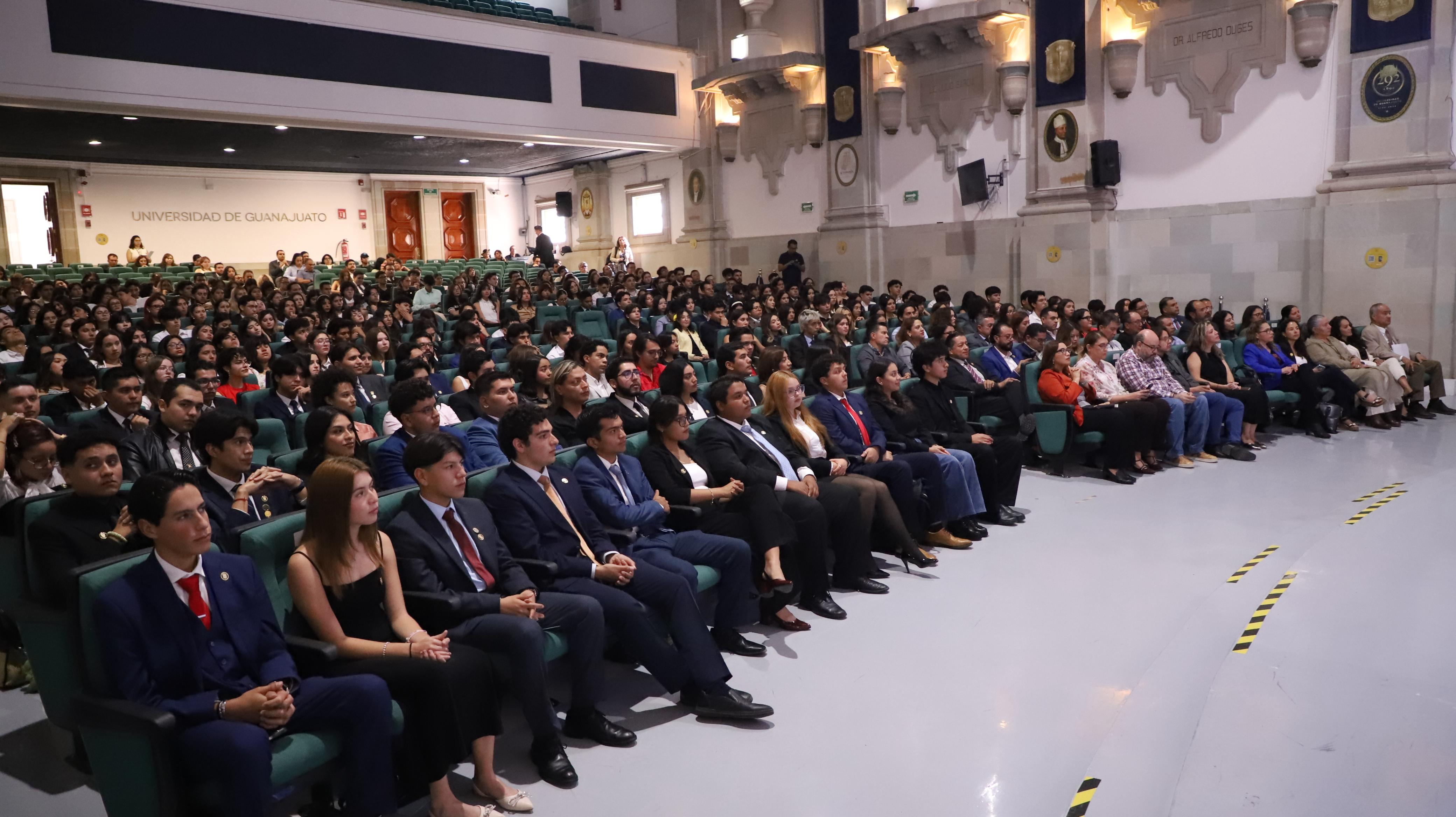 Guanajuato, Gto., a 21 de agosto de 2025.- Autoridades universitarias tomaron protesta a las 25 Mesas Directivas de la Sociedad Estudiantil 2025-2026 de la Universidad de Guanajuato (UG), integradas por 11 del Nivel Medio Superior y 14 del Nivel Superior. Con este acto, se formaliza el compromiso y la responsabilidad de quienes asumen este importante rol en la vida universitaria, al representar a sus comunidades y fomentar la labor social a través de actividades que permitirán desarrollar y potenciar sus habilidades de liderazgo.