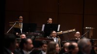 Guanajuato, Gto., a 30 de agosto de 2025.- Con el programa “La guerra y la música”, la Orquesta Sinfónica de la Universidad de Guanajuato (OSUG) fue dirigida por Ramón Shade para estrenar, a nivel nacional, la Marcha militar húngara, de Franz Liszt; a nivel latinoamericano, el War Concerto, de Dirk Brossé, y la Sinfonía núm. 100, en sol mayor “Militar”, de Franz Joseph Haydn, esto en compañía del solista Hugo Manzanilla, clarinetista principal de la agrupación.