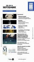 Dará inicio el taller de "Meditación", por Fernando Pérez Balderas, con nueve sesiones del 10 de septiembre al 5 de noviembre, los miércoles de 10:30 a 13:30 horas. Más informes pueden solicitarse a Esta dirección de correo electrónico está protegida contra spambots. Usted necesita tener Javascript activado para poder verla. . El Club de intercambio de idiomas (español-inglés) continúa los miércoles de 16 a 18 horas y los sábados de las 11 a las 13 horas. Finalmente, sigue la exposición de juguete popular mexicano de Guanajuato, "A jugar se ha dicho", colección del Dr. Gabriel Medrano de Luna.