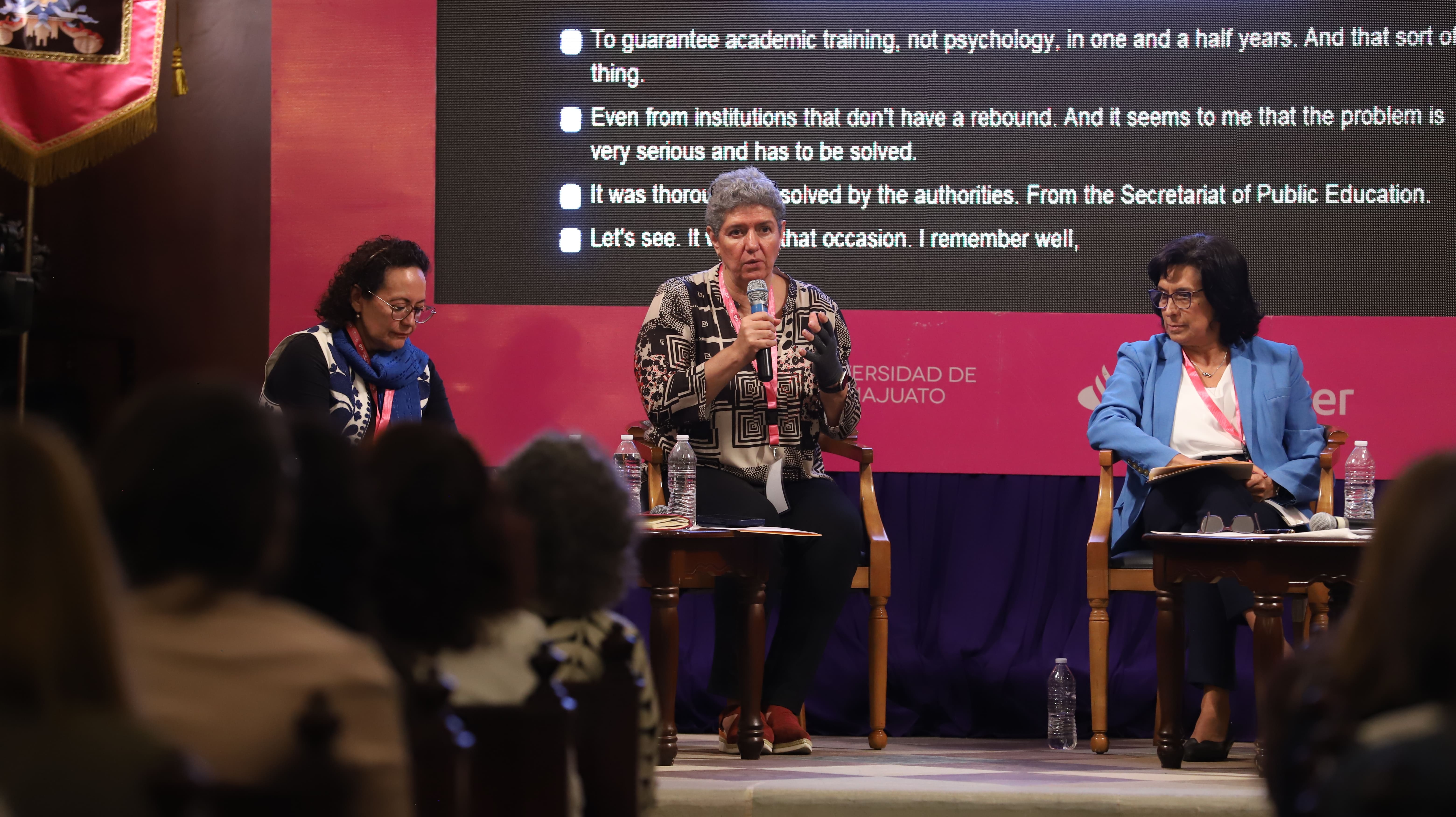 El panel estuvo integrado por la exrectora de la Universidad Autónoma de Querétaro, Teresa García Gasca; la Rectora de la Unidad Iztapalapa de la Universidad Autónoma Metropolitana, Verónica Medina Bañuelos; la Rectora de la Universidad Autónoma del Estado de México, Viridiana Aydeé León Hernández; y la recién reelecta Rectora de la Benemérita Universidad Autónoma de Puebla, Ma. Lilia Cedillo Ramírez, quien participó en modalidad virtual.