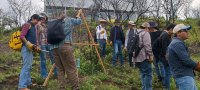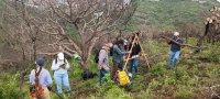 Posteriormente, se realizó una evaluación rápida de la severidad del incendio, observando la mortandad de la vegetación y la erosión hídrica del suelo. Luego, se enseñó el uso del nivel A para calcular las curvas de nivel, se trazaron curvas y se realizaron acomodos de vegetación muerta con el propósito de reducir la erosión hídrica laminar.