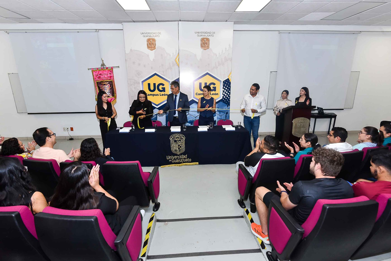 Durante la inauguración, estuvieron presentes el Rector del Campus León, Dr. Mauro Napsuciale Mendívil; la Secretaria Académica del Campus León, Dra. Katya Vargas Ortiz; la Coordinadora de Desarrollo Estudiantil, Lcda. Montserrat Alejandra Ramírez Leyva; el responsable del área de Orientación Psicológica, Lic. Jonahatan Giuseppe Vázquez Zepeda; y la alumna Alejandra Celis Pérez, estudiante de Psicología y orientadora de la unidad.