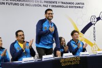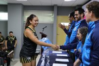 “Portar este escudo y estos colores significa llevar en el pecho la historia de quienes precedieron”, expresó Kevin Alexander Carbajal López, estudiante de la Licenciatura en Fisioterapia e integrante del Selectivo de Tochito, a nombre de la comunidad deportista, además de agradecer el apoyo de autoridades y personal de entrenamiento.