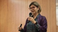 Luego de ello, la Dra. Gómez López compartió la conferencia “Economía en industria farmacéutica", donde se mostró honrada por poder convivir de manera disciplinar por primera vez en esta área y dejando evidencia de su personalidad como docente, además de su pasión por la divulgación de las ciencias.
