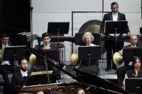 Después del intermedio, la velada concluyó con Danzas sinfónicas Op. 45 (1940), del ruso Serguei Rachmanninov, obra concebida originalmente para dos pianos, cuyo estreno fue en las manos del compositor y Vladimir Horowitz, ambos reconocidos por su virtuosismo como intérpretes en la época. También se ha documentado que la pieza fue pensada como un ballet al estilo de una danza macabra, incluyendo la secuencia de una misa de difuntos y procurando representar las etapas de la vida humana.