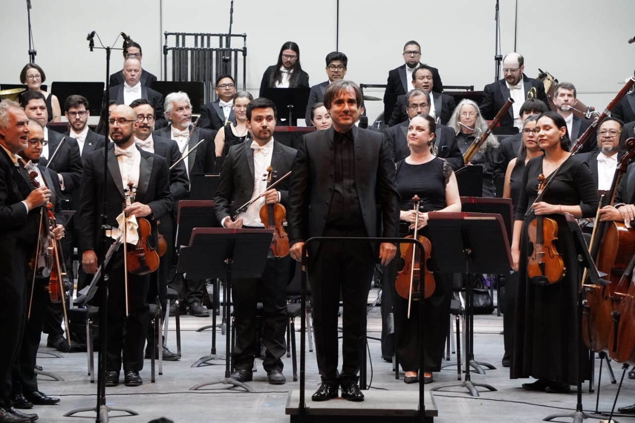 Guanajuato, Gto., a 27 de septiembre de 2025.- El séptimo programa de la Orquesta Sinfónica de la Universidad de Guanajuato (OSUG), “Del cine al concierto”, contó con la presencia del director español Carlos Domínguez-Nieto, para dar vida al Concierto para trompeta, de John Williams, estreno a nivel nacional en el Teatro Principal, y en la parte solista José Cayetano Hernández Díaz, integrante de la agrupación.