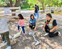 En el área de juegos, las y los universitarios organizaron una lotería y un memorama, incluyendo un espacio artístico para colorear piezas en forma de insectos, así como una actividad de búsqueda de esqueletos, donde las niñas y los niños desenterraron huesos de yeso para ir formar la estructura ósea de animales.