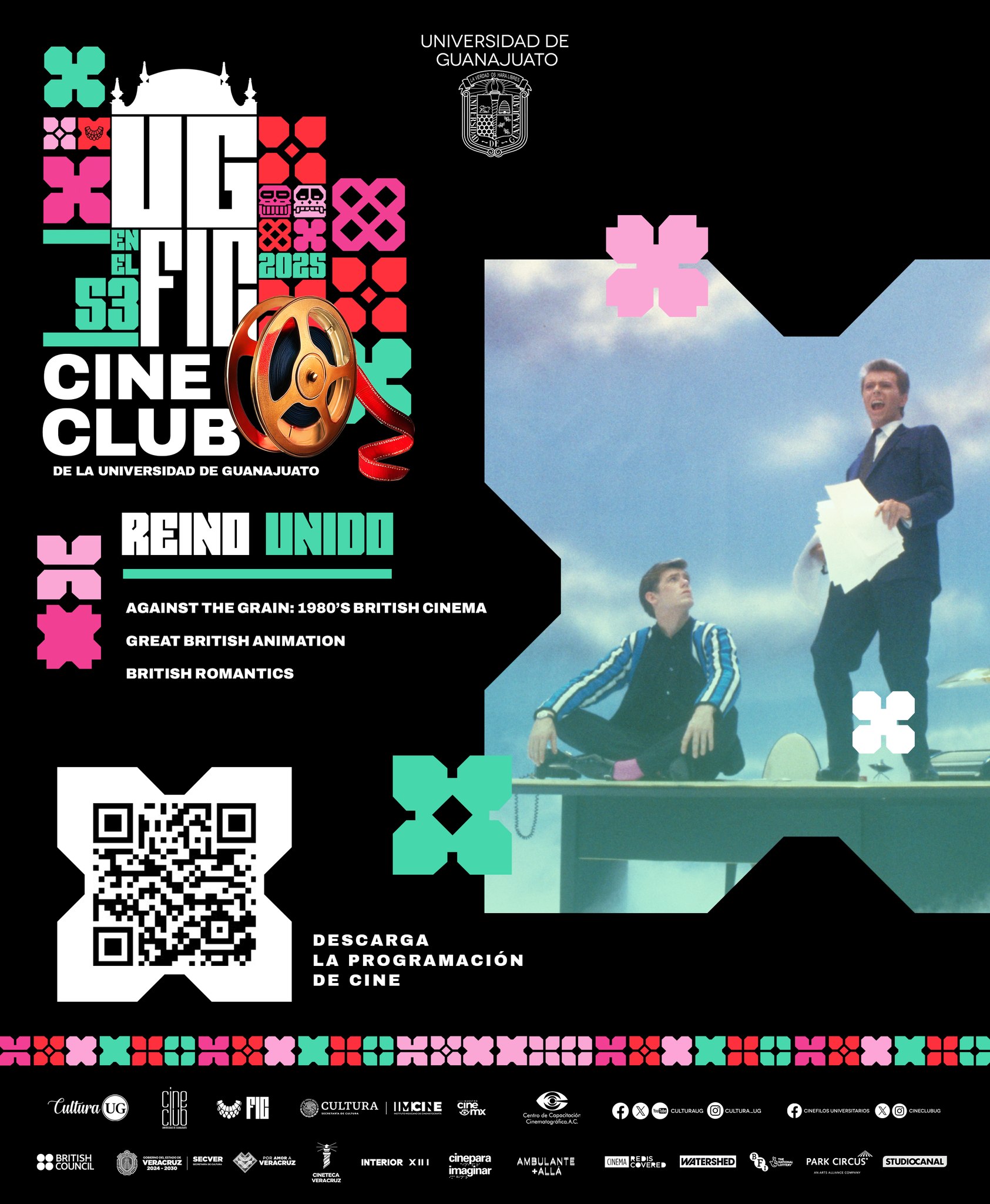 Guanajuato, Gto., a 17 de octubre de 2025.- Con motivo del 53 Festival Internacional Cervantino (FIC), el Cine Club de la Universidad de Guanajuato (UG) tiene una nutrida programación para el público general, la cual contempla más de 50 filmes representativos de la cultura cinematográfica de Reino Unido y Veracruz, estados invitados de honor a este festival.