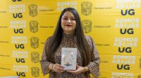 León, Gto., 23 de octubre de 2025.- Con el propósito de fomentar la creatividad y el interés por la poesía, la Coordinación de Extensión Cultural, del Campus León de la Universidad de Guanajuato (UG), llevó a cabo la presentación del libro ¿Y si volamos juntos?, una antología de poesía libre a cargo de Karla Daniela Loredo Rubio, egresada de la Licenciatura en Educación del Campus Guanajuato, quien compartió su proceso creativo y experiencia en el ámbito literario.