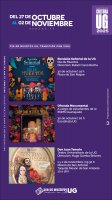El III Ciclo de charlas: “Tardes literarias” abordará los Cuentos macabros, de la escritora Alejandra Cuevas, con la participación de la Dra. Claudia Liliana Gutiérrez Piña, el 28 de octubre a las 18:00 horas. Igualmente, continúa el “Taller de lectura y análisis de El Capital, de Karl Marx”, el 30 de octubre a partir de las 14:00 horas, ambos en la Librería UG.